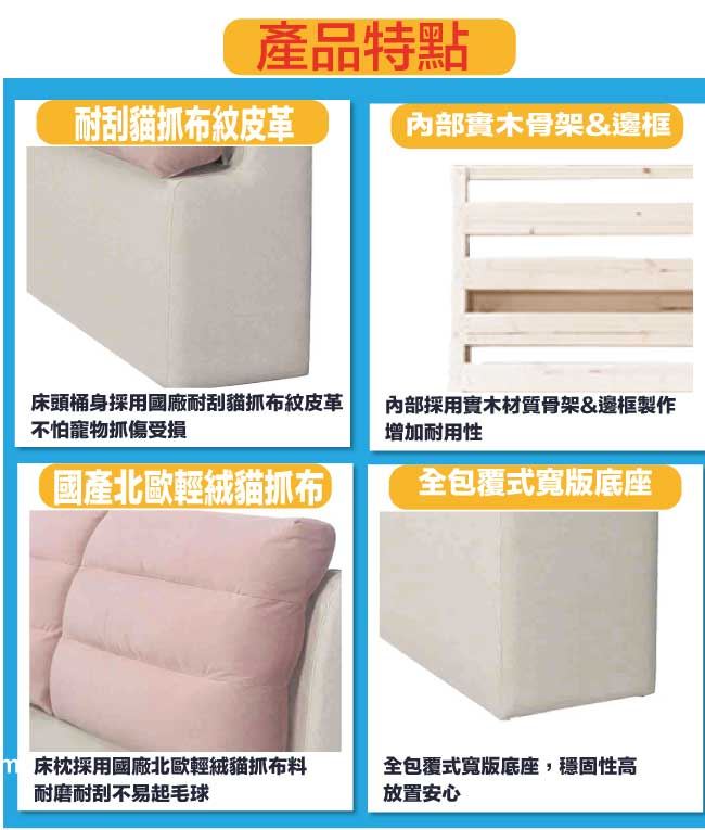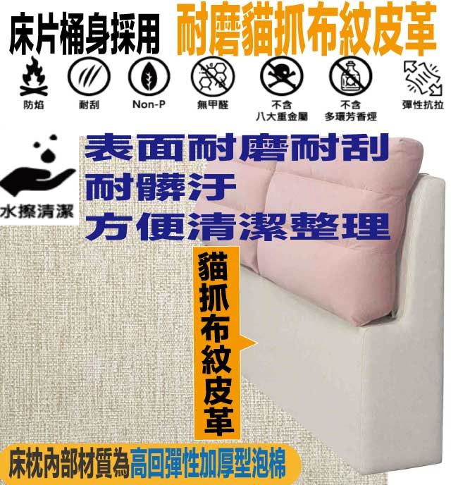 【綠家居】麥思6尺雙人加大貓抓布&皮革床頭片