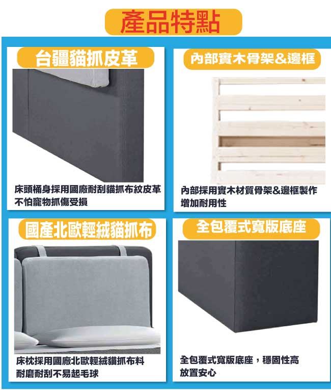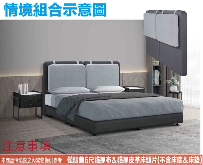 【綠家居】菲達斯6尺雙人加大貓抓布&皮革床頭片