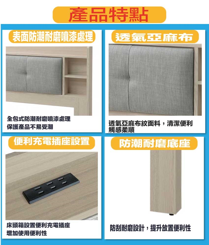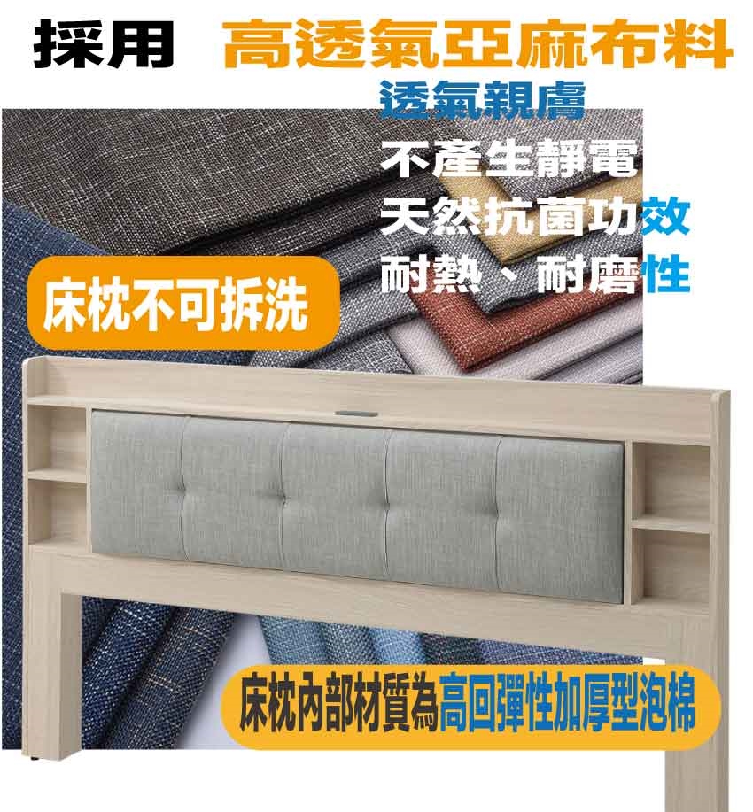 材質:防蛀木心板+防潮耐磨底座+透氣亞麻布+高回彈泡棉