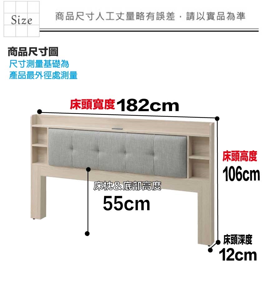 床頭尺寸:(寬)182x(深)12x(高)106/公分