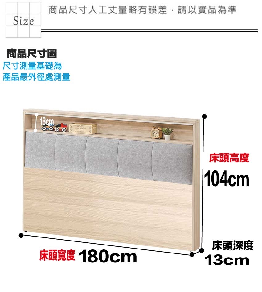 床頭尺寸:(寬)180x(深)13x(高)104/公分