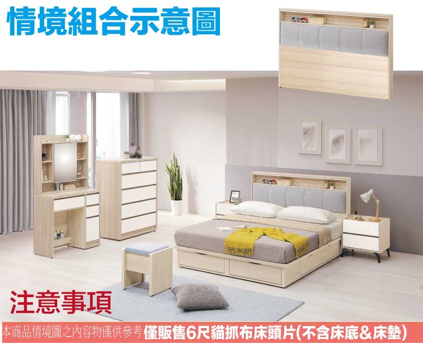 - ◆產品名稱:【綠家居】山多利6尺雙人加大貓抓布床頭片(不含床底+不含床墊)