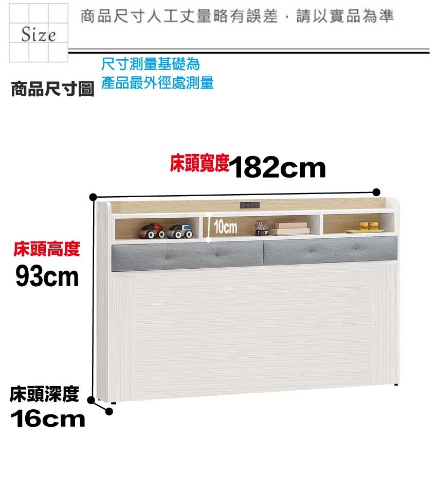 床頭尺寸:(寬)182x(深)16x(高)93/公分