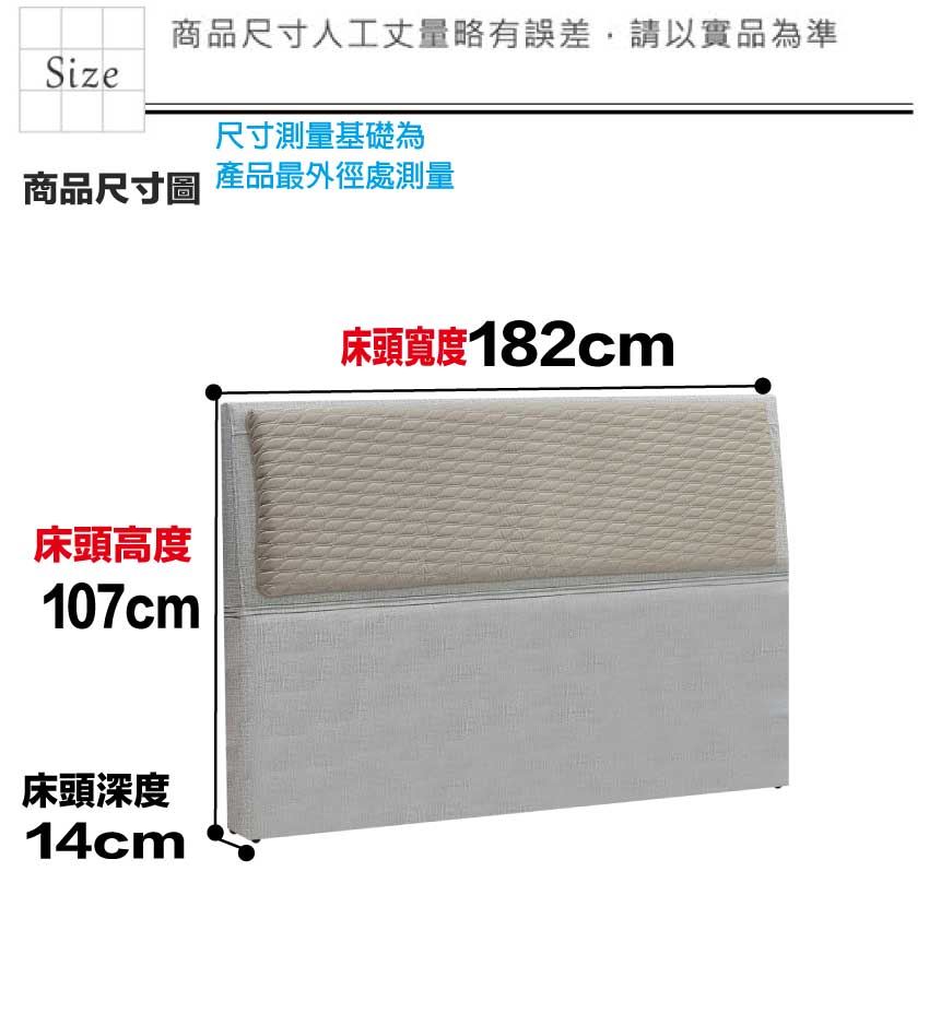 床頭尺寸:(寬)182x(深)14x(高)107/公分
