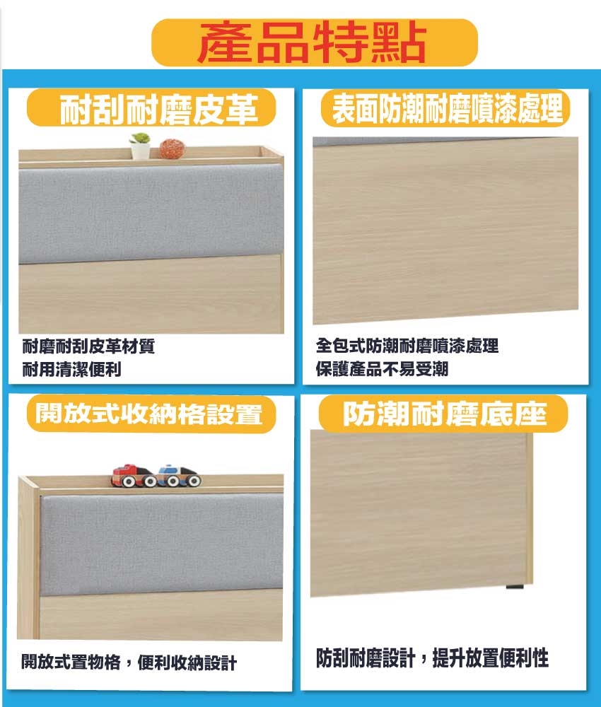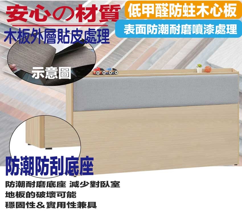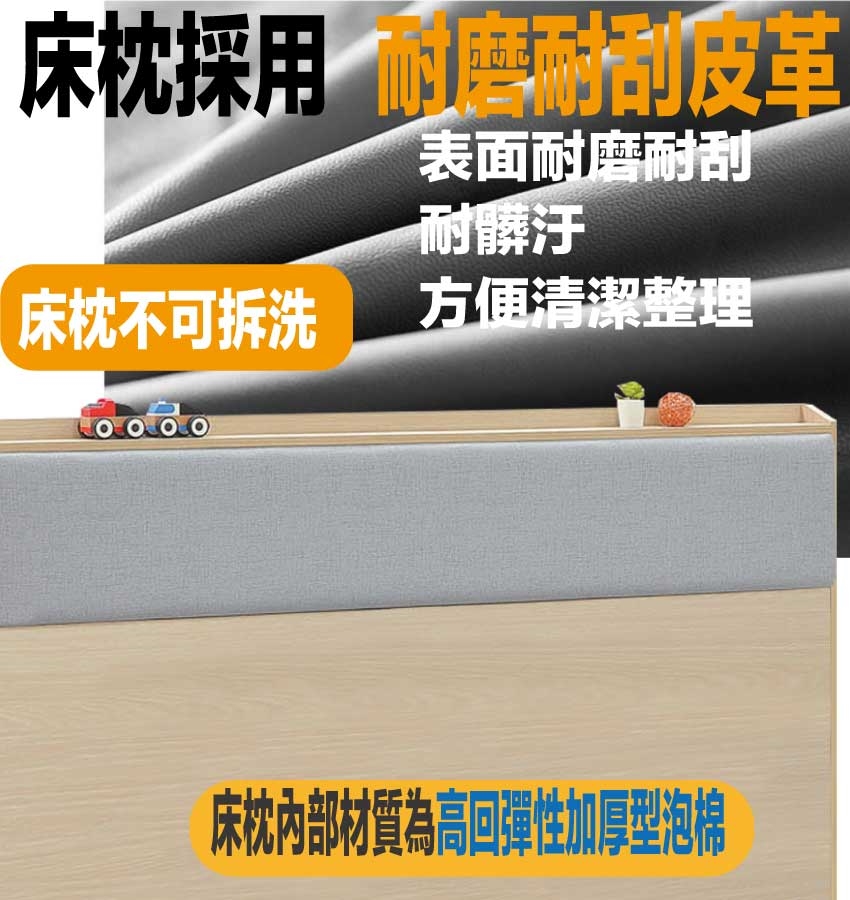 材質:防蛀木心板+防潮耐磨底座+耐磨耐刮皮革+高回彈泡棉
