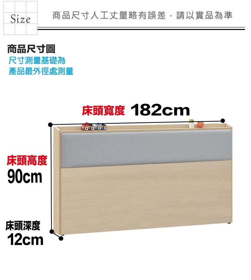床頭尺寸:(寬)182x(深)12x(高)90/公分