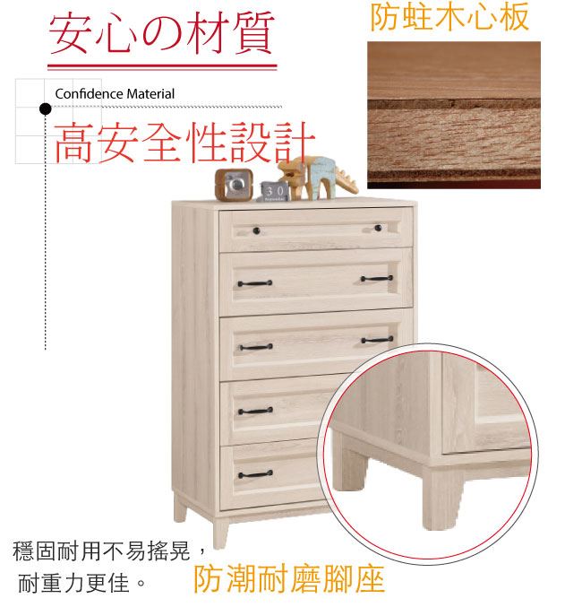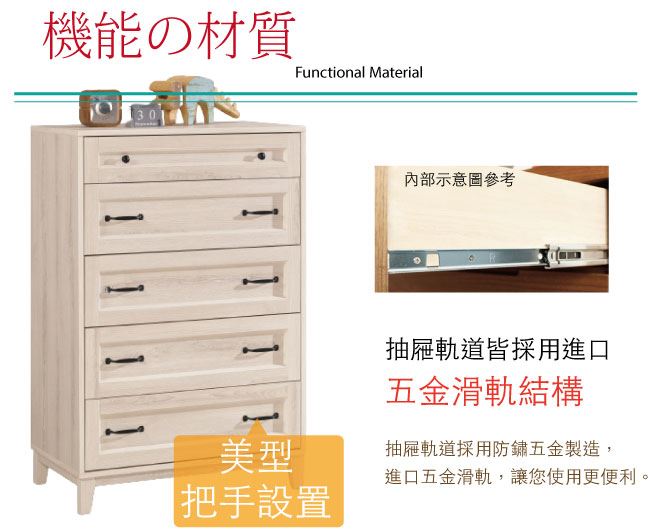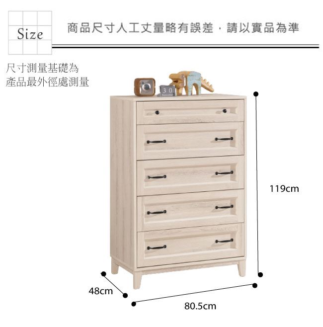 材質 | ◆產品名稱: 【綠家居】馬拉提 淺橡2.7尺五抽斗櫃/收納櫃 產品尺寸: 尺寸:(寬)80.5x(深)48x(高)119/公分 ◆材質: 材質:防蛀木心板+防潮耐磨腳座 材質:五金滑軌結構 塗漆:優利坦全包式耐磨噴漆處理