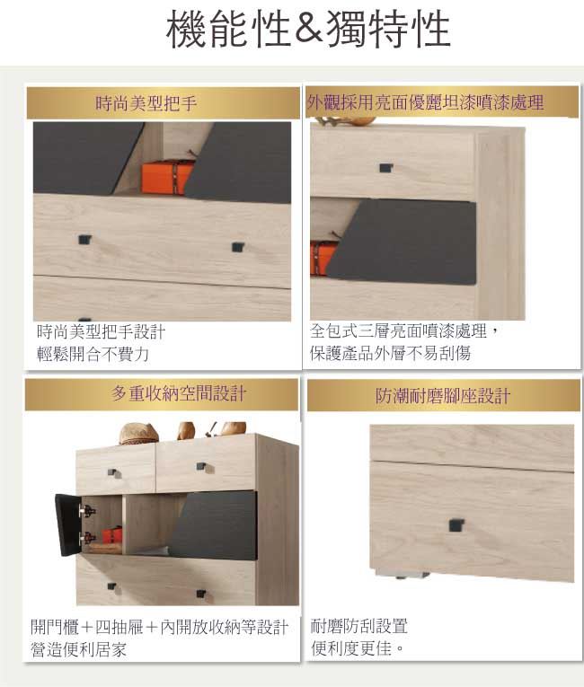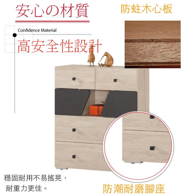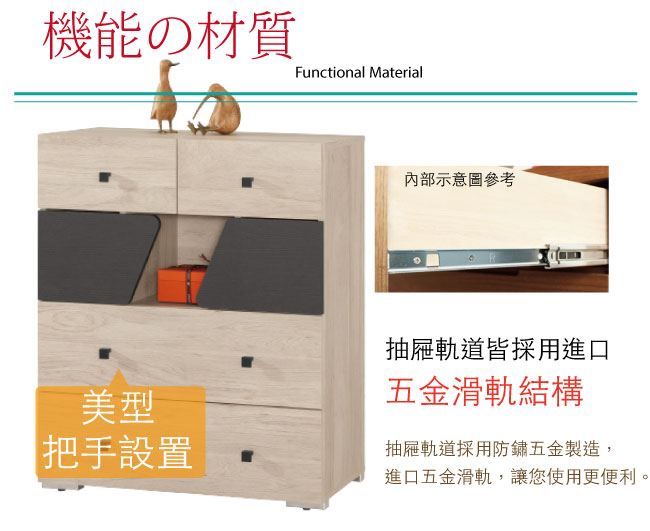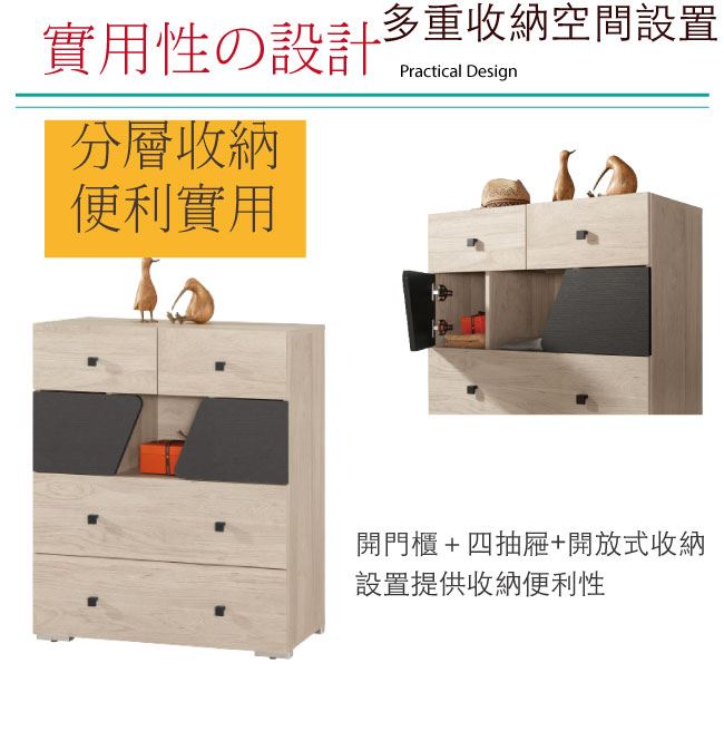 木紋雙色系+五金滑軌結構- 開門櫃+三抽屜+開放式收納