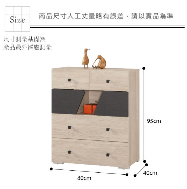材質 | ◆產品名稱: 【綠家居】羅達文 雙色2.7尺二門三抽斗櫃 產品尺寸: 尺寸:(寬)80x(深)40x(高)95/公分 ◆材質: 材質:防蛀木心板+防潮耐磨腳座 材質:五金滑軌結構 塗漆:優利坦全包式耐磨噴漆處理