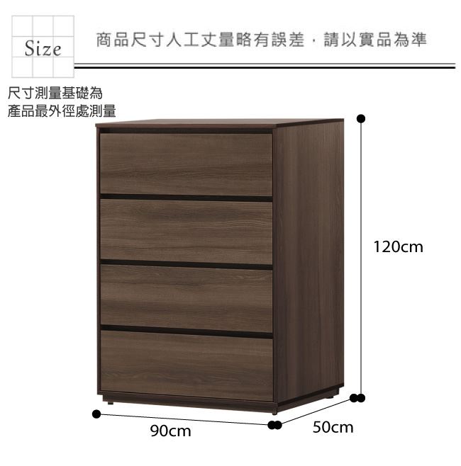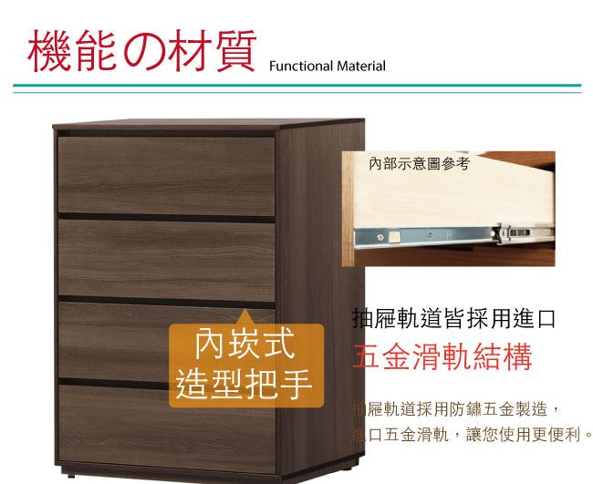 材質 | ◆產品名稱: 【綠家居】雷迪 時尚3尺四抽斗櫃/收納櫃 尺寸:(寬)90x(深)50x(高)120/公分 ◆材質: 材質:防蛀木心板+五金滑軌結構+防刮耐磨腳座 外層採用防潮耐磨噴漆處理
