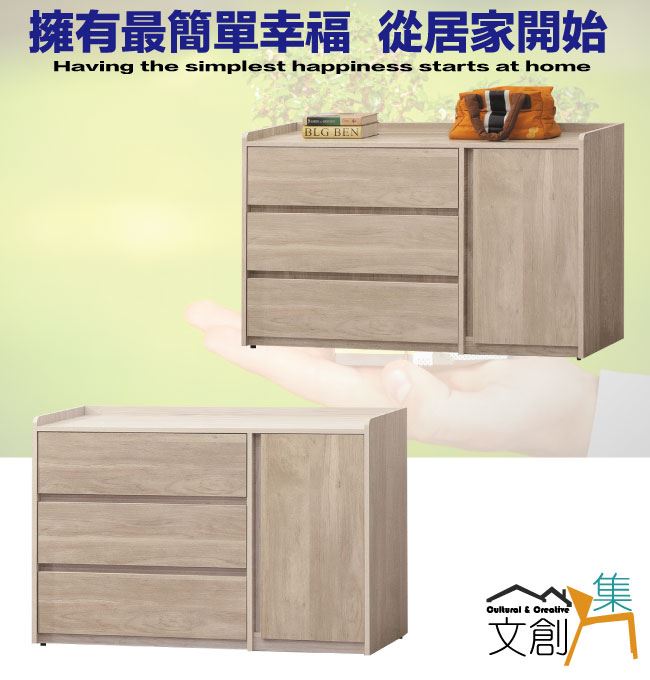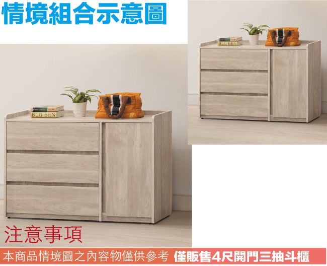 【綠家居】曼特4尺三抽單開門斗櫃(二色可選)