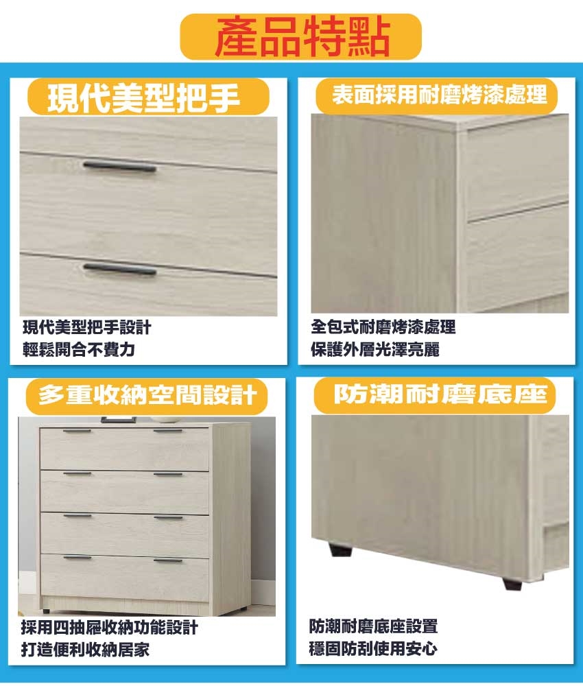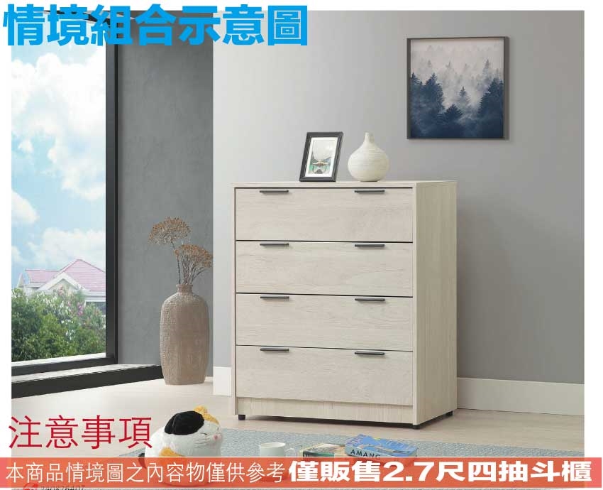 - ◆產品名稱:【綠家居】夏斯2.7尺四抽斗櫃