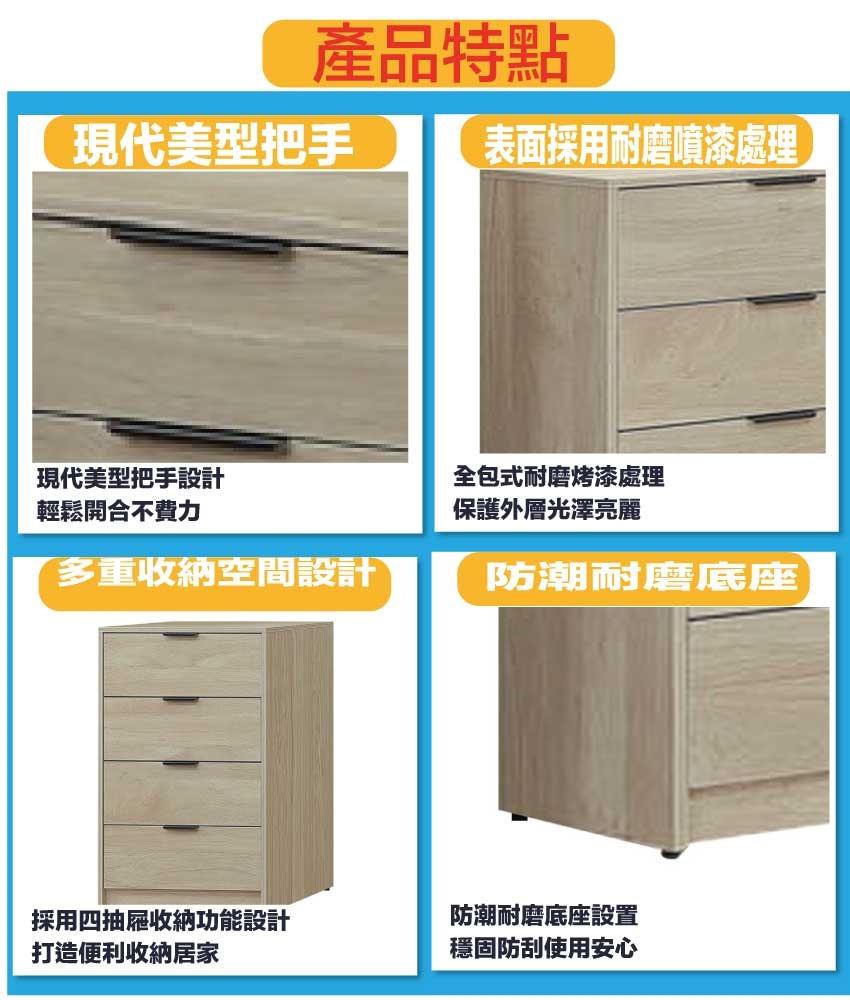 ★偏遠地區需額外加收運費,下標請先問與答詢問★ ★下訂前注意 由於商品流動較快,下訂前請先詢問是否有貨在下訂喔~★ 【綠家居】畢克爾2尺四抽斗櫃 橡木紋色系+安心材質製造,使用放心+搭配居家更便利,採用防蛀木心板+防潮耐磨底座+五金滑軌結構等安心材質製造 ,外層採用防潮耐磨噴漆處理搭配採用四抽屜+開放層格等收納空間設計,全由專人配送到家,專業安心服務,替你省下更多時間!