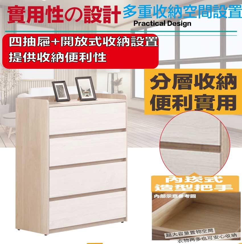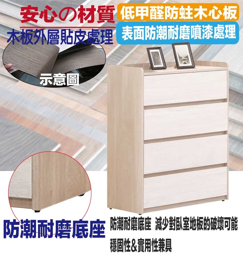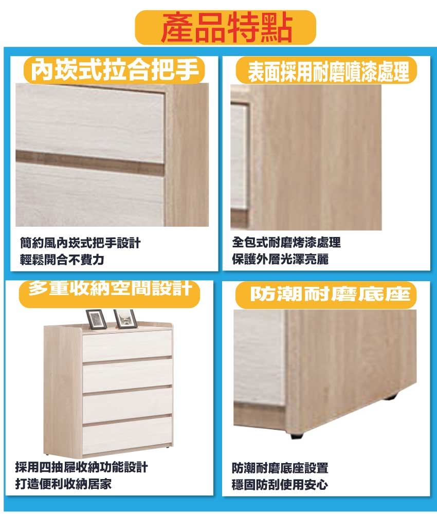 - ◆產品名稱:【綠家居】雷克利雙色2.7尺四抽斗櫃