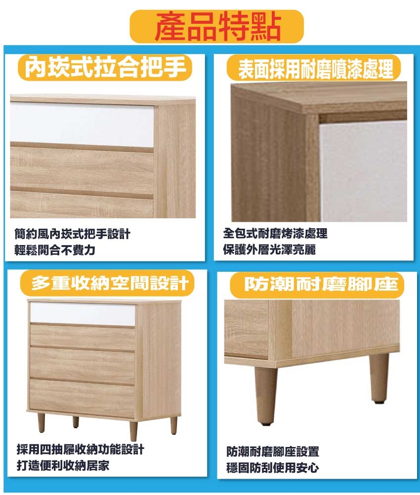 - ◆產品名稱:【綠家居】艾米2.7尺四抽斗櫃