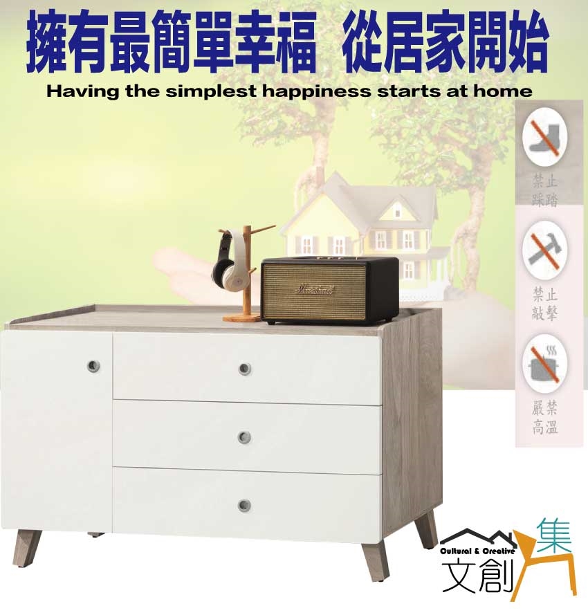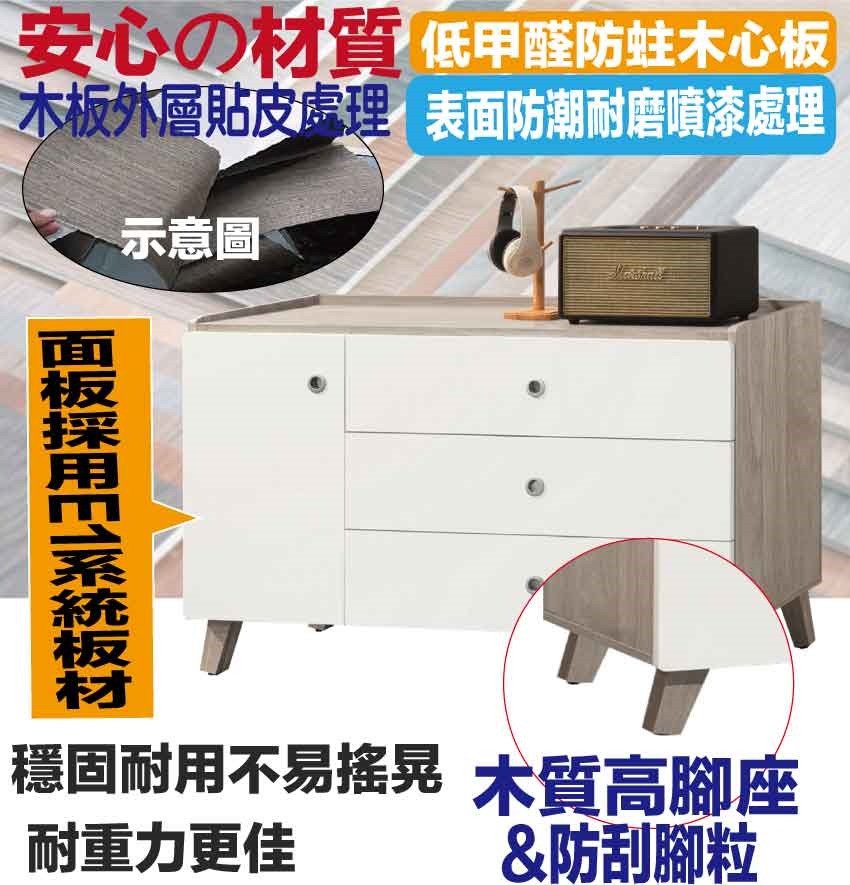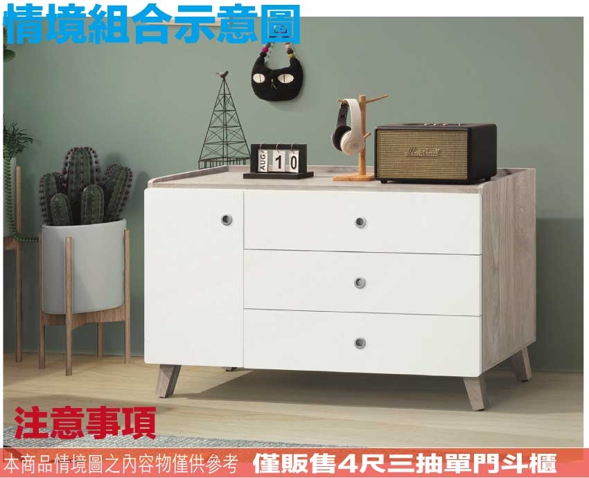 - ◆產品名稱:【綠家居】克順4尺三抽單門斗櫃