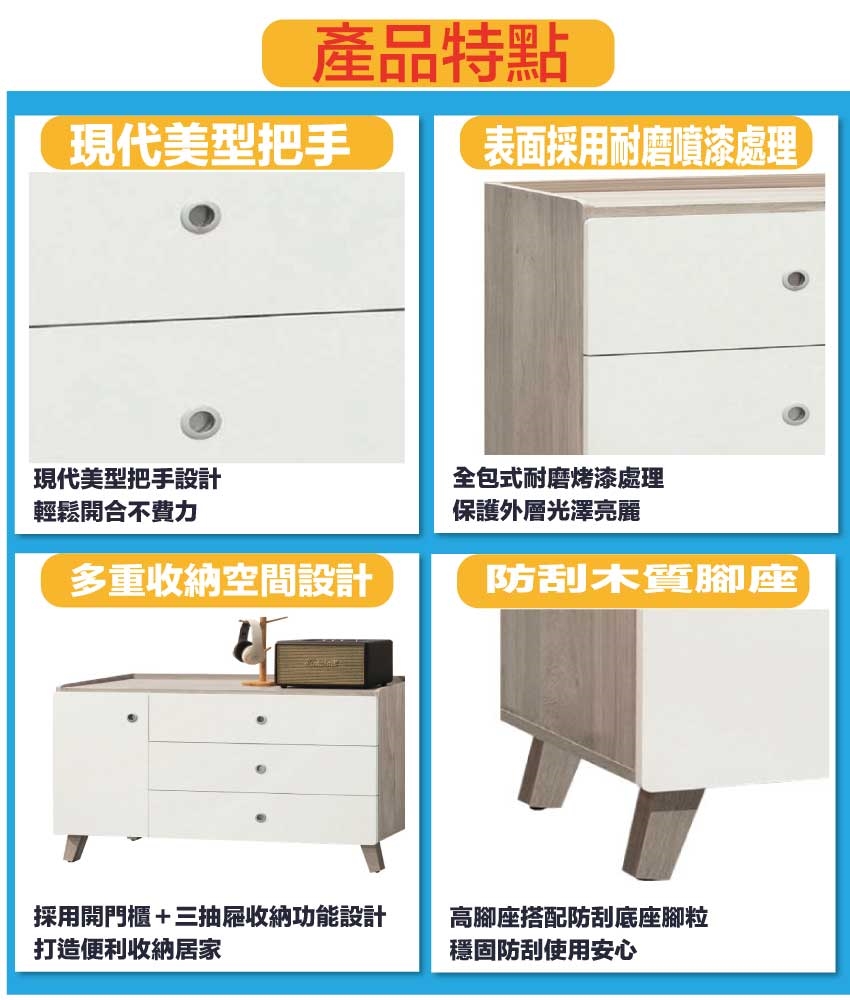 材質:防蛀木心板+E1系統板材+木質高腳座&防刮腳粒