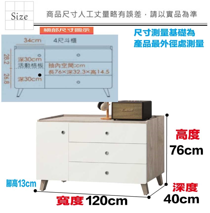 - 尺寸:(寬)120x(深)40x(高)76/公分