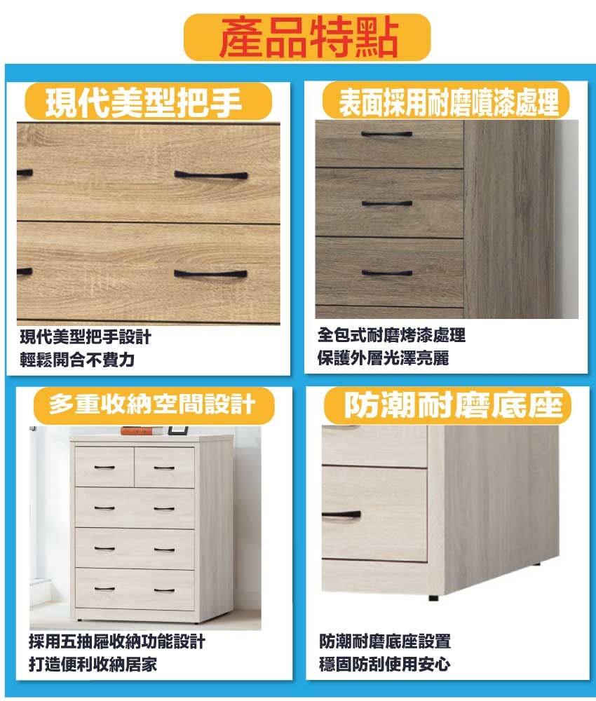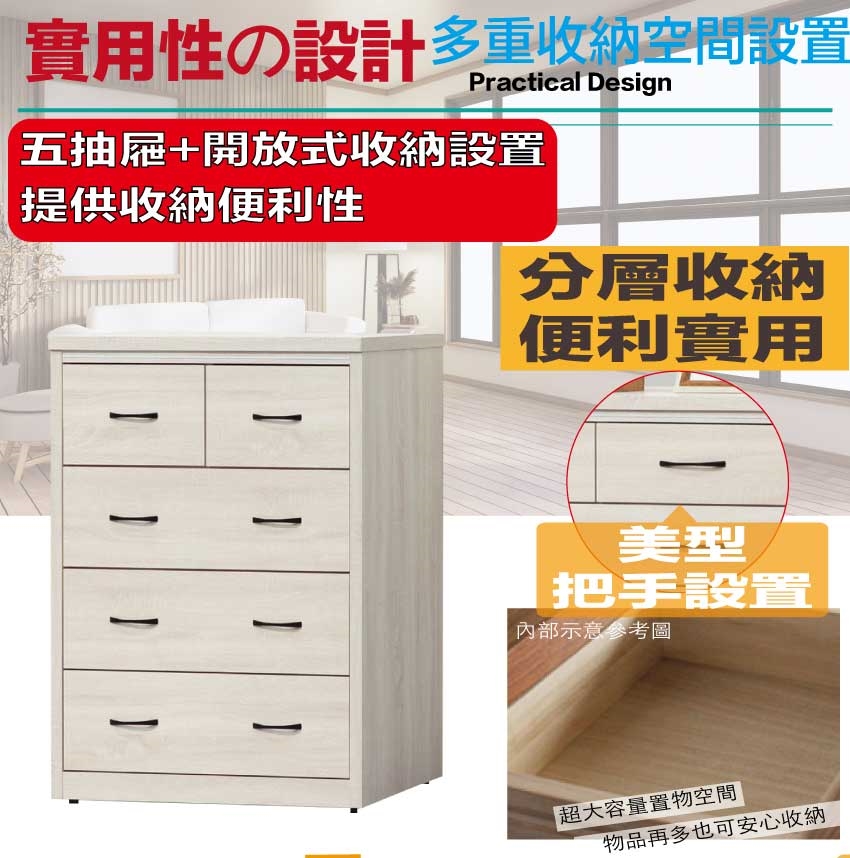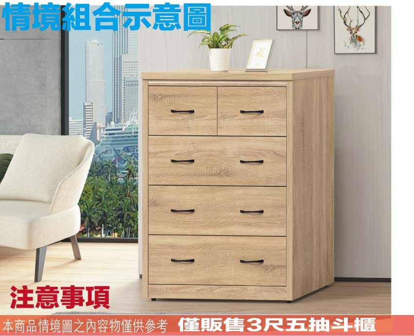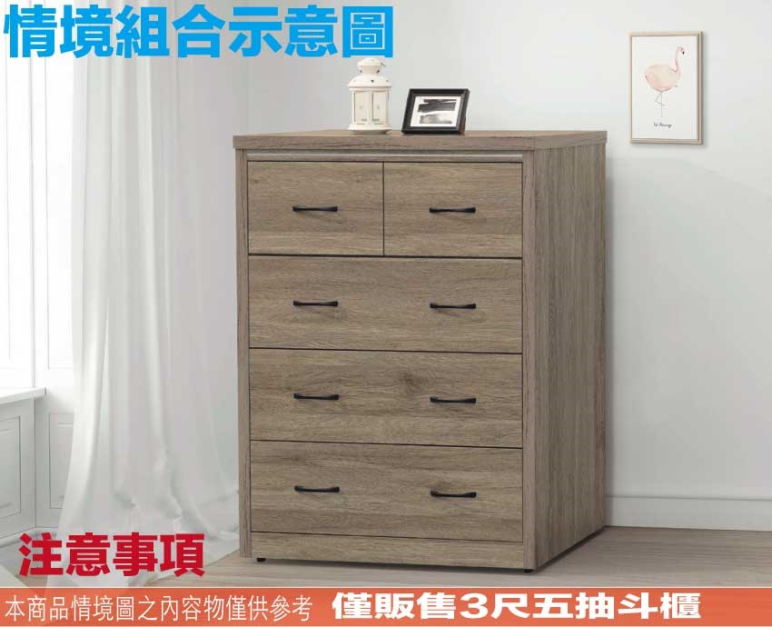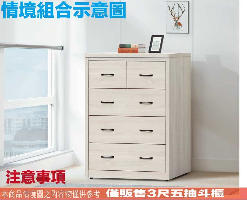 - ◆產品名稱:【綠家居】艾悠3尺五抽斗櫃(三色可選)