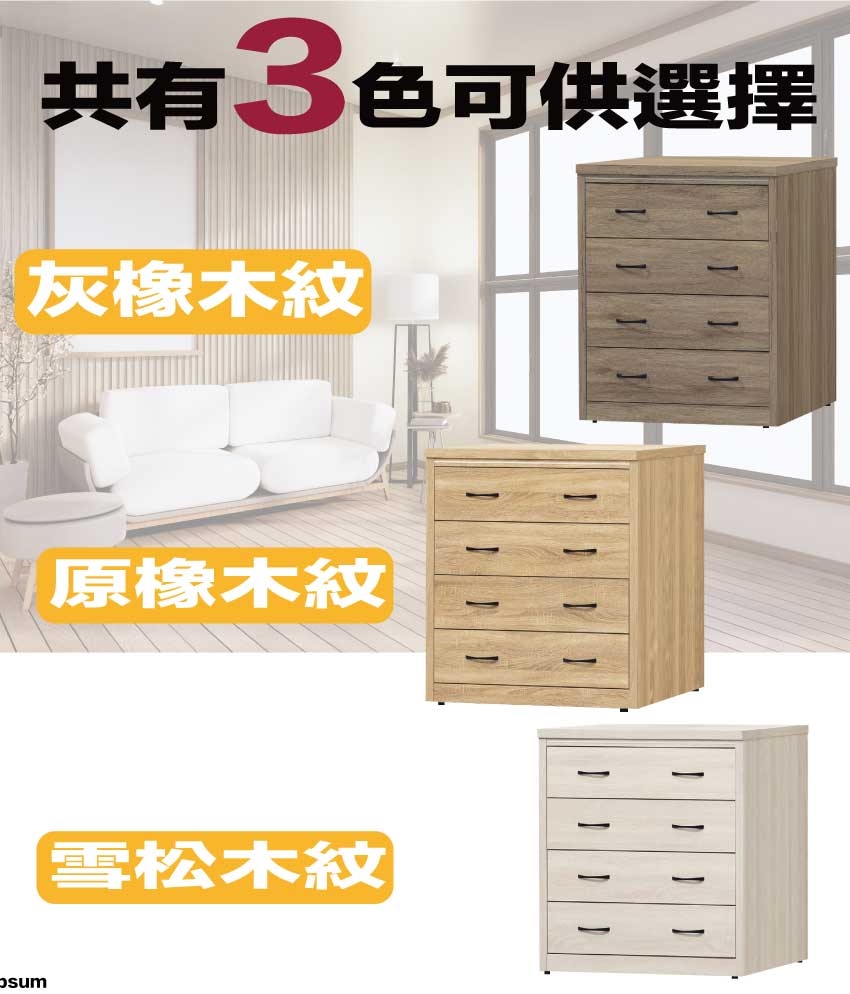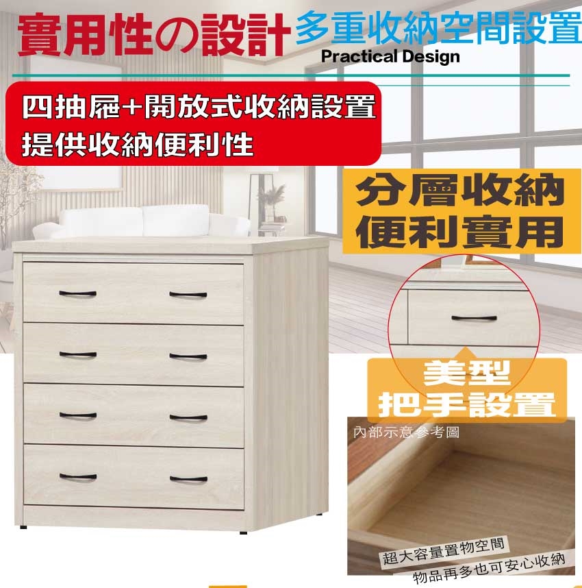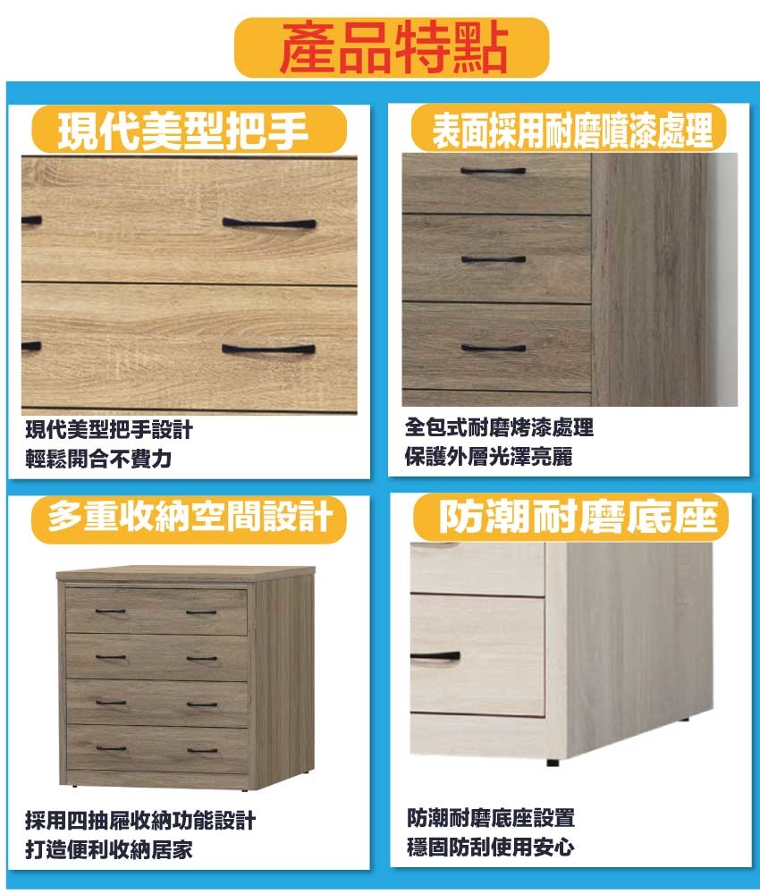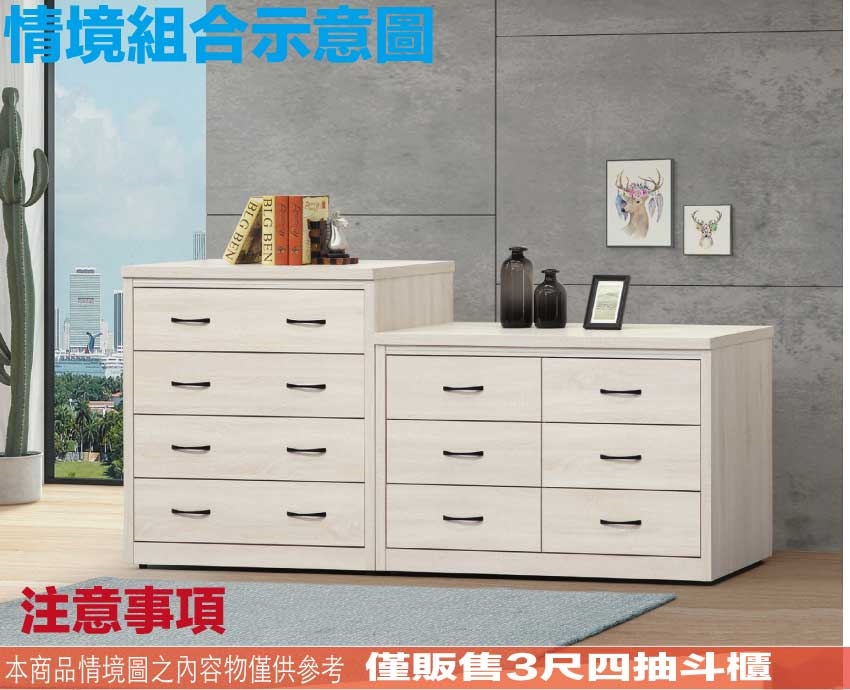 - ◆產品名稱:【綠家居】艾悠3尺四抽斗櫃(三色可選)