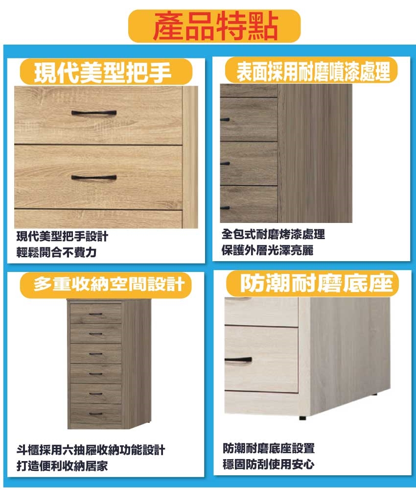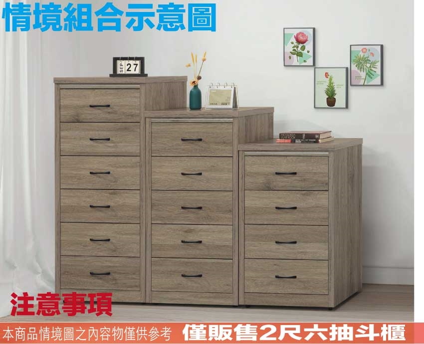 - ◆產品名稱:【綠家居】艾悠2尺六抽斗櫃(三色可選)