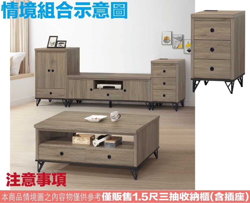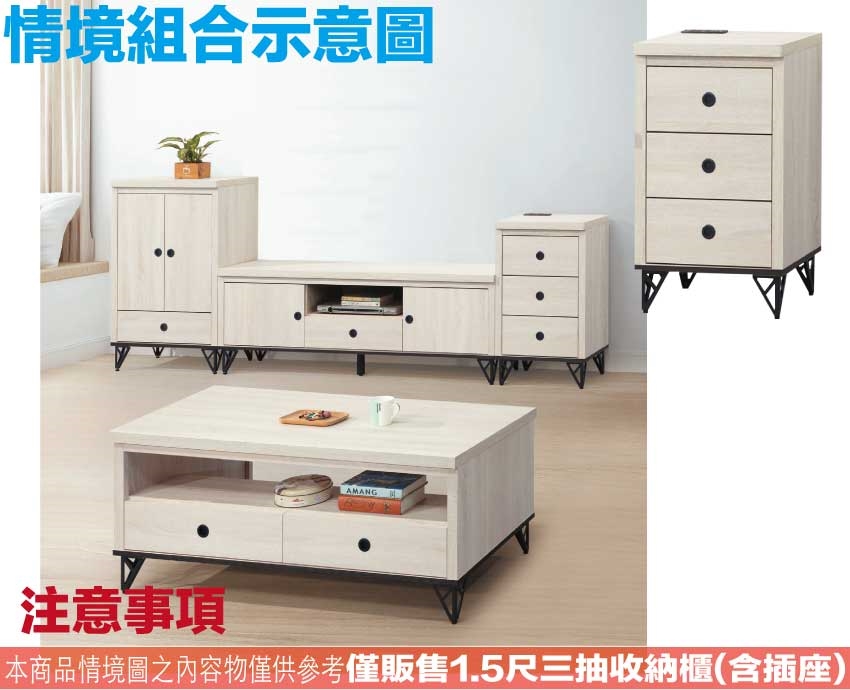 - ◆產品名稱:【綠家居】瑪法1.5尺三抽收納櫃(三色可選+充電插座設置)