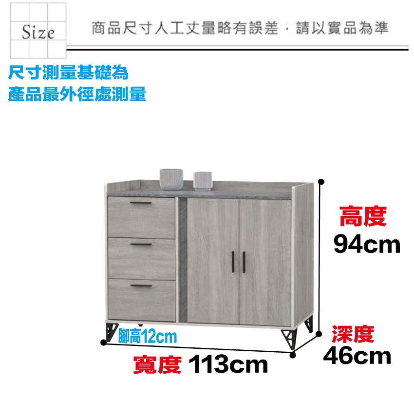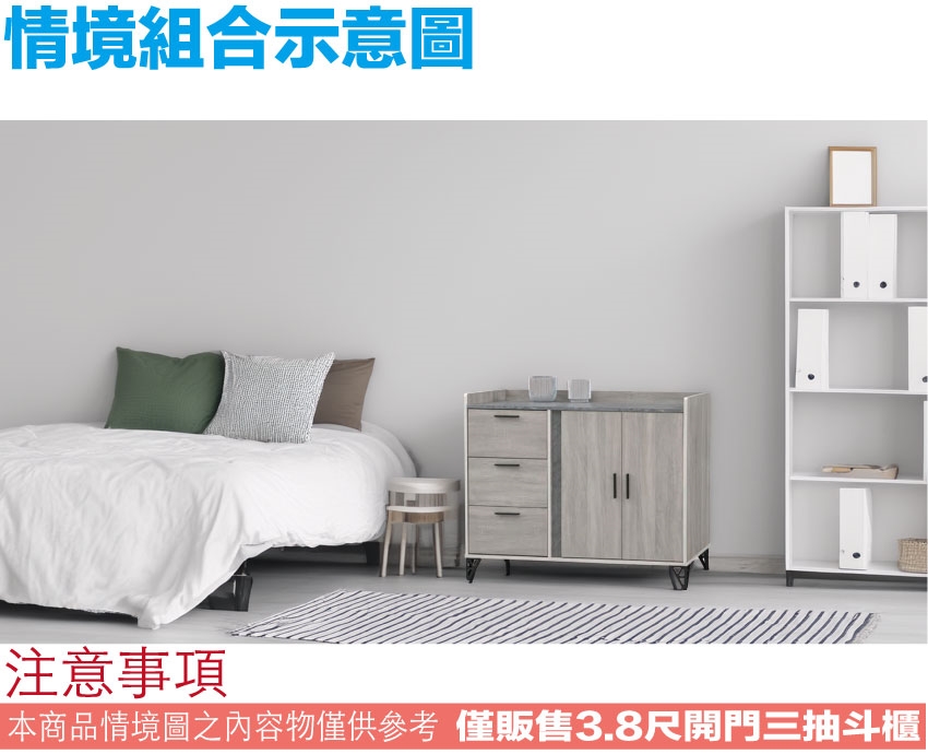 產品名稱:【綠家居】伊爾雙色3.8尺單門三抽斗櫃 - 尺寸:(寬)113x(深)46x(高)94/公分
