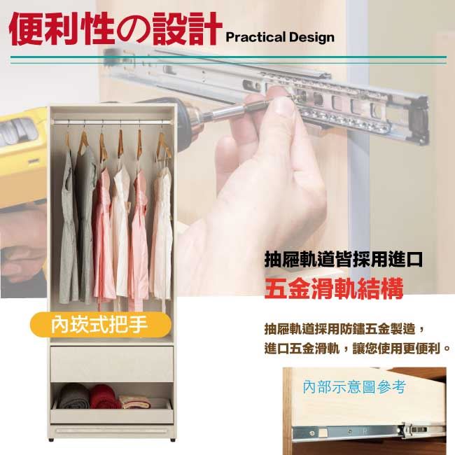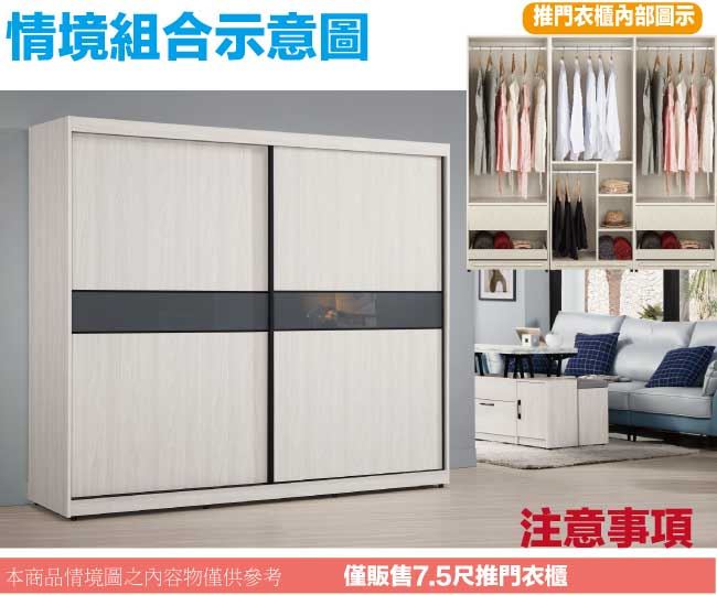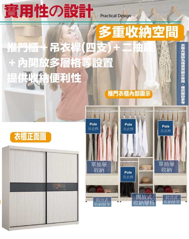【綠家居】摩克7.5尺四吊衣桿二抽拉盤推門衣櫃/收納櫃