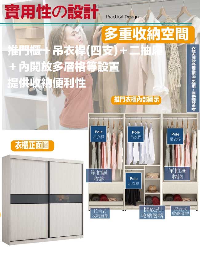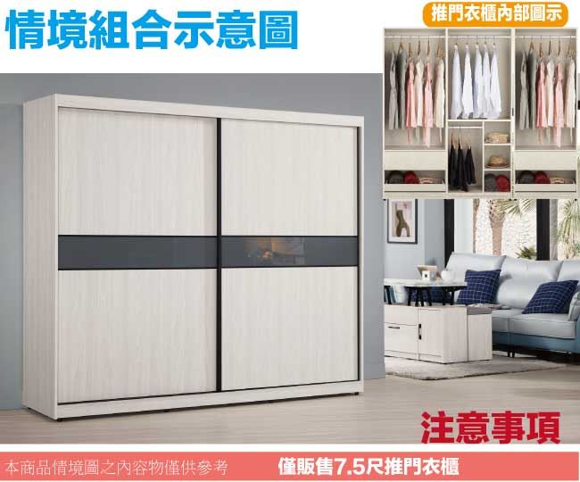 【綠家居】摩克7.5尺多功能二抽拉盤推門衣櫃/收納櫃