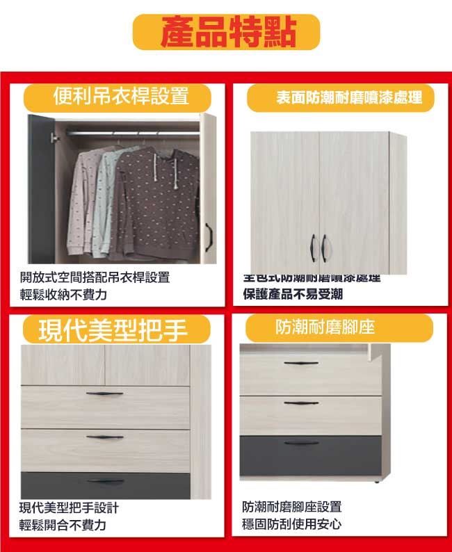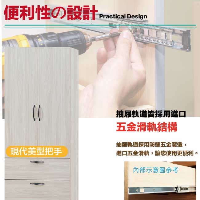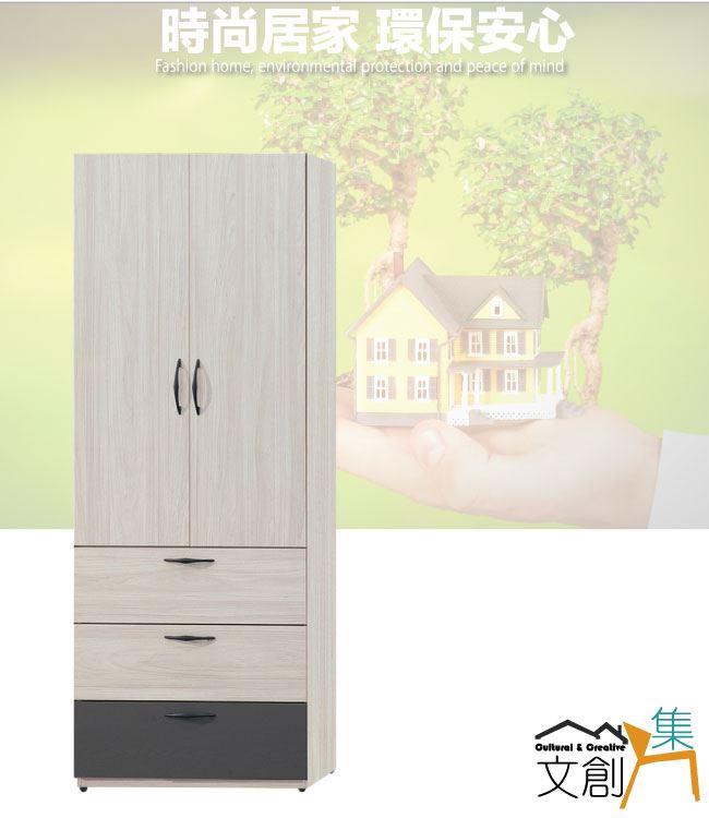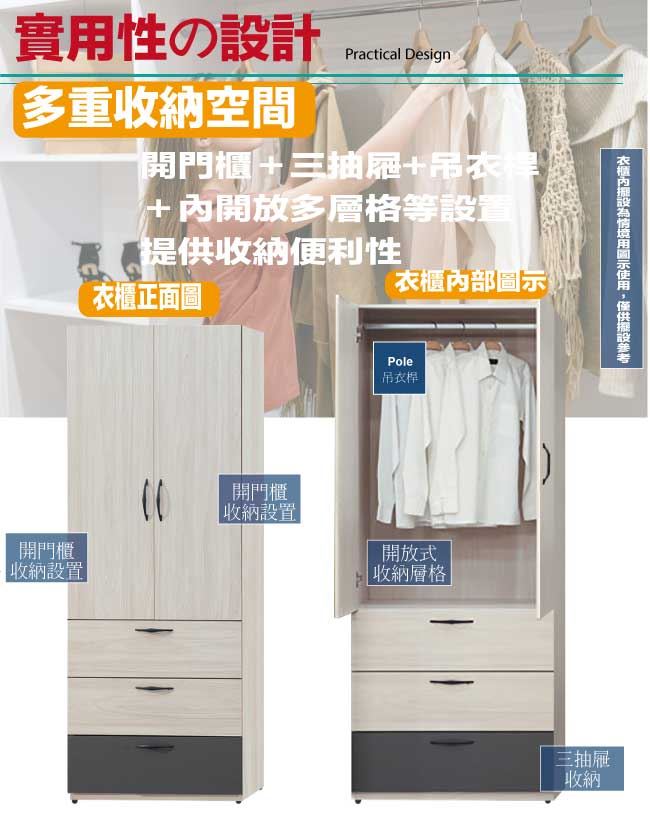 【綠家居】路多雙色2.6尺二門三抽衣櫃