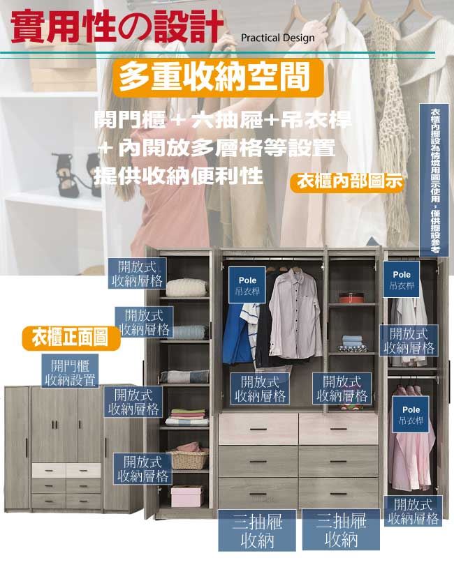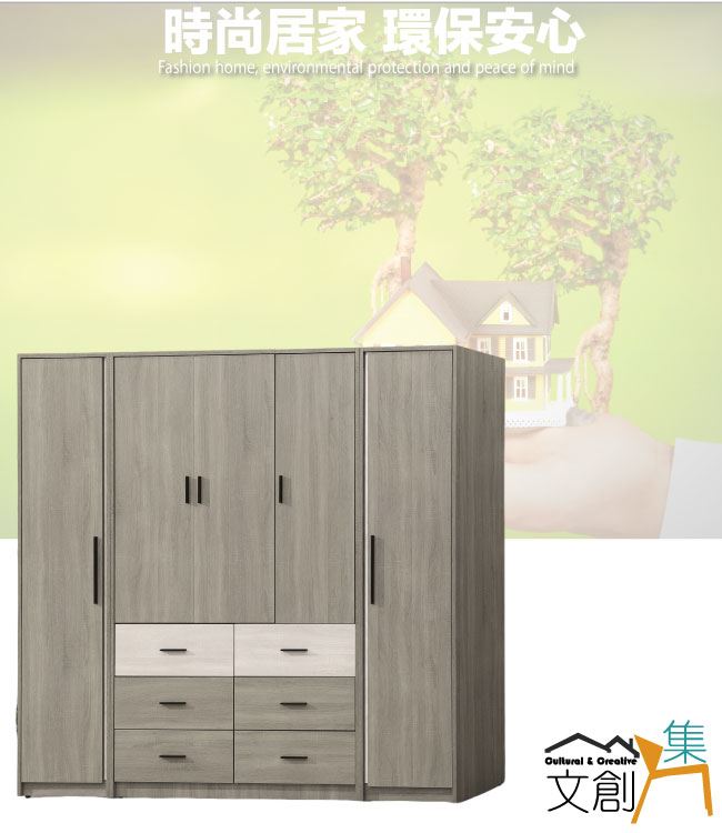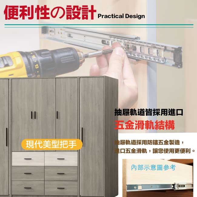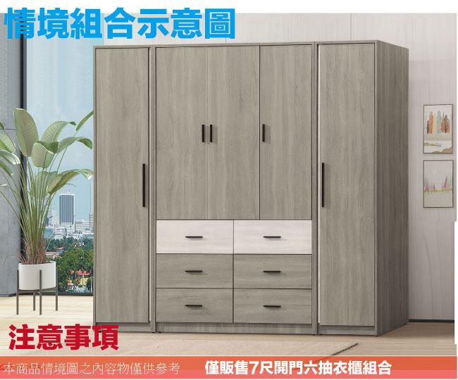 【綠家居】琳諾7尺五門六抽衣櫃組合