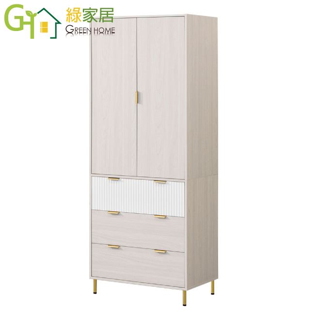 【綠家居】卡利森2.7尺二門三抽衣櫃