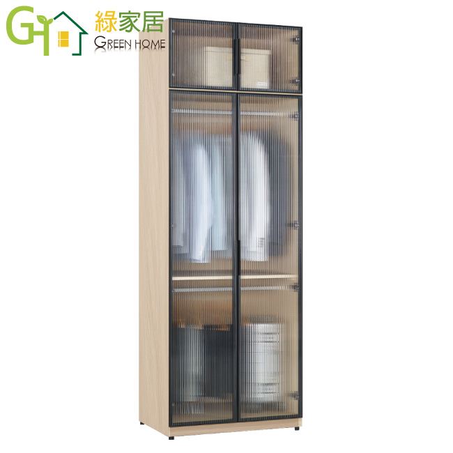 【綠家居】維爾2.7尺大四門鋁框玻璃加高衣櫃組合