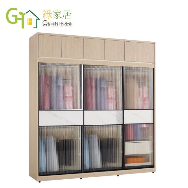 【綠家居】維爾岩板7尺鋁框加高玻璃衣櫃組合(吊衣桿x5+單抽屜)