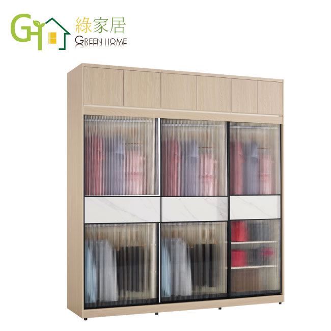【綠家居】維爾岩板7尺鋁框加高玻璃衣櫃組合(吊衣桿x5+內多分層格)
