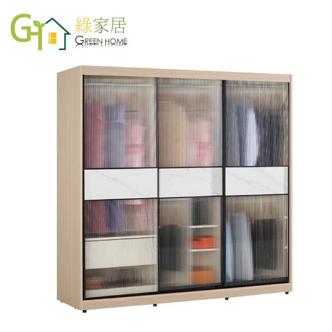 【綠家居】維爾7.5尺玻璃岩板鋁框衣櫃(吊衣桿x5+單抽屜)