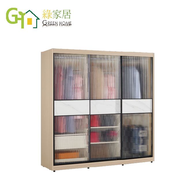 【綠家居】維爾玻璃6.1尺岩板鋁框衣櫃(吊衣桿x4+單抽屜)