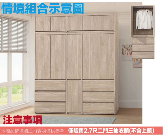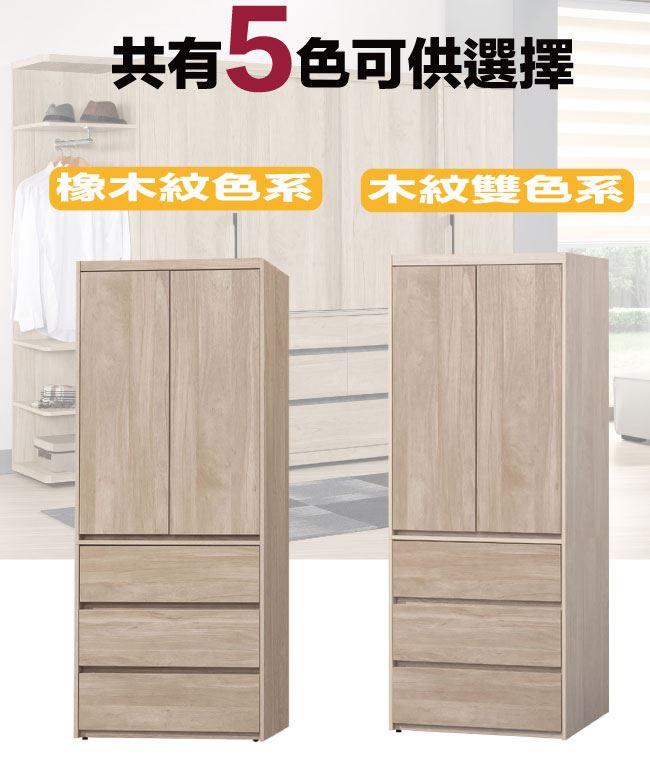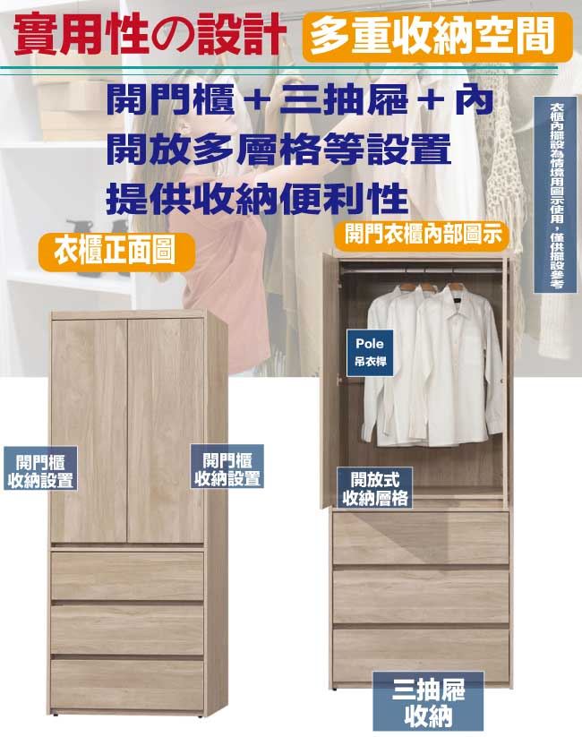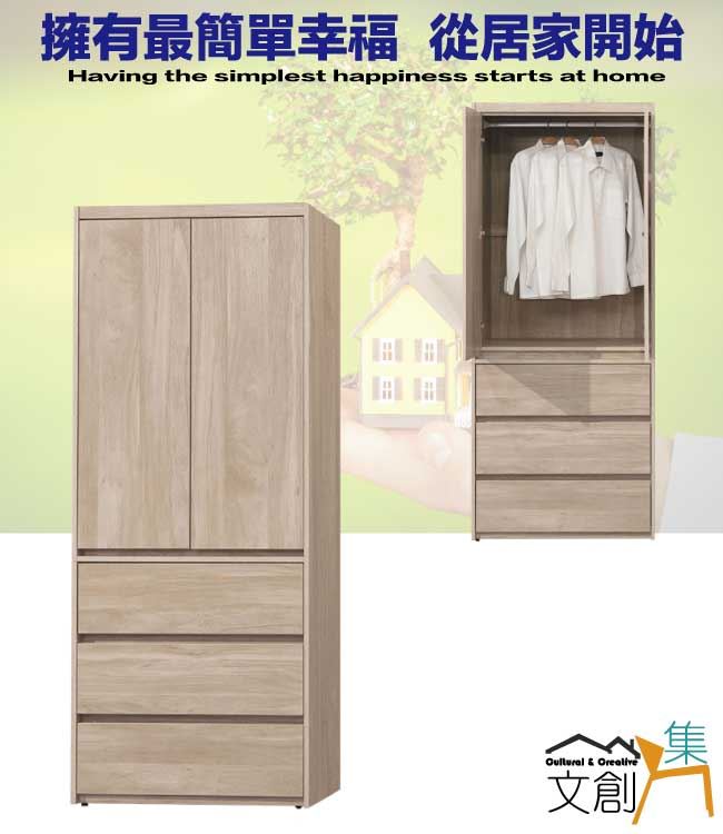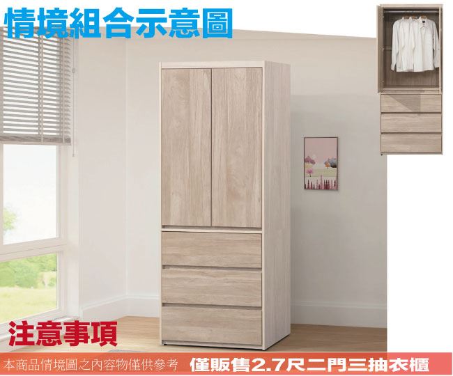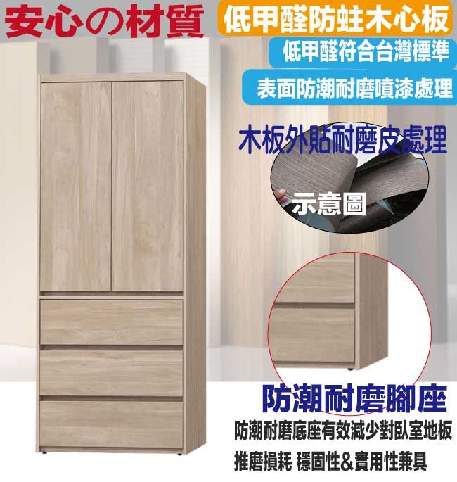 【綠家居】曼特2.7尺二門三抽衣櫃(二色可選)