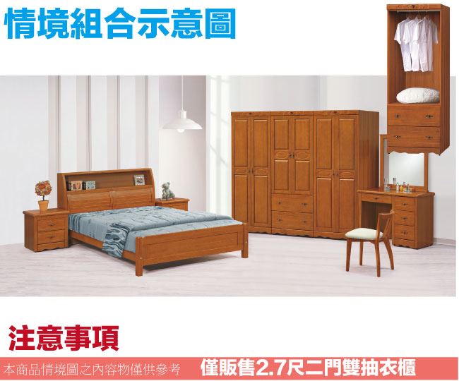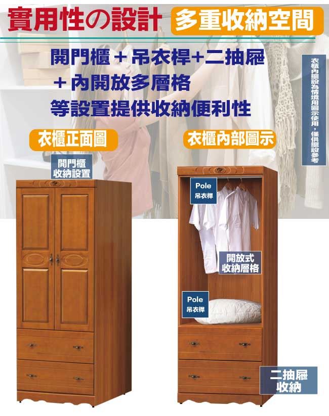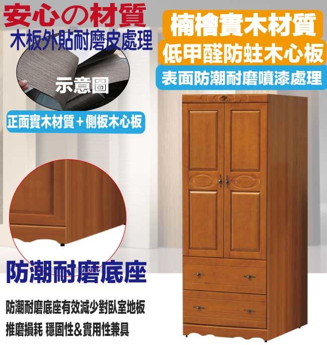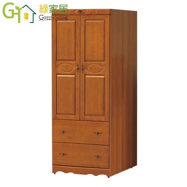 【綠家居】秋意2.7尺實木二門二抽衣櫃