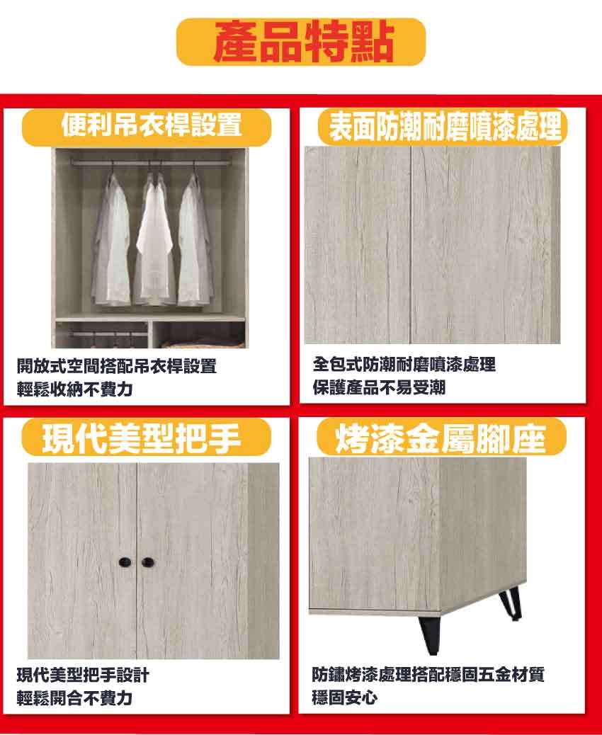 材質:防蛀木心板+烤漆金屬腳座+防夾手緩衝門片五金