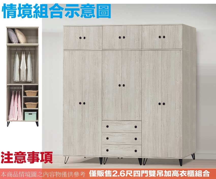 【綠家居】摩帝2.6尺四門內雙吊加高衣櫃組合