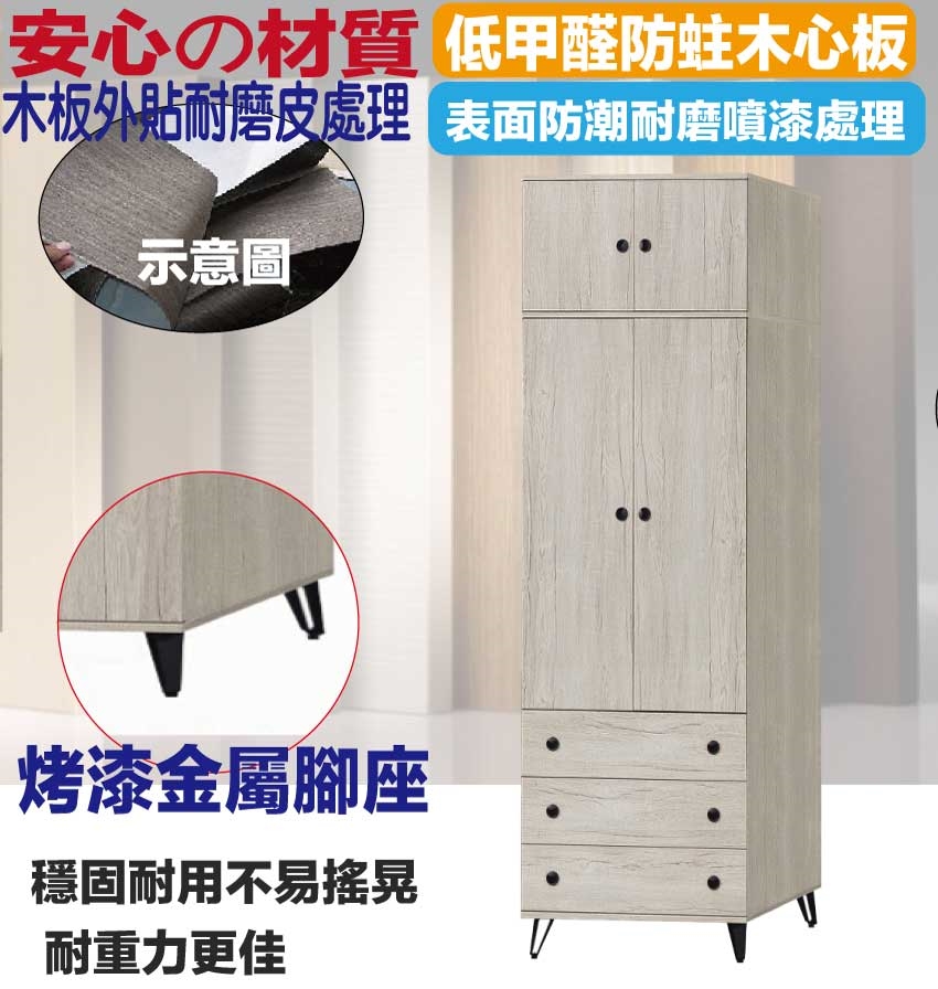 【綠家居】摩帝2.6尺四門三抽加高衣櫃組合