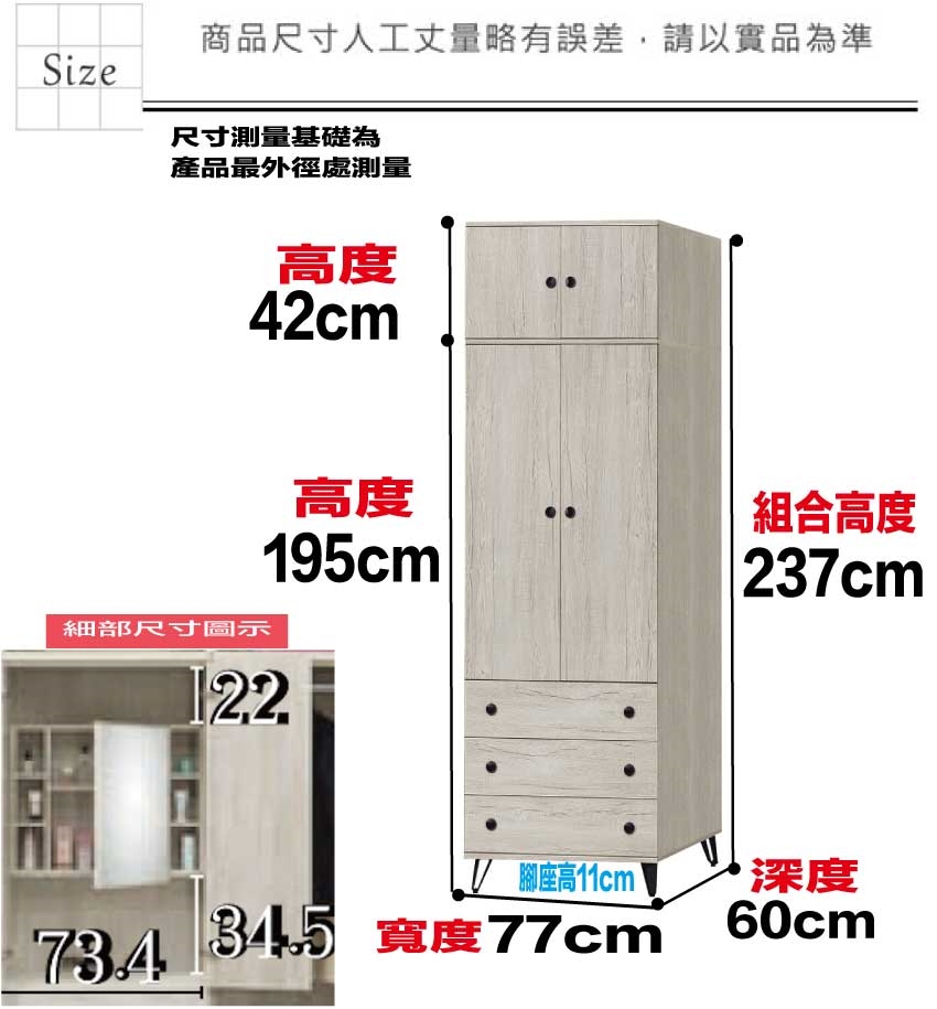 - 尺寸:(寬)77x(深)60x(高)237/公分
