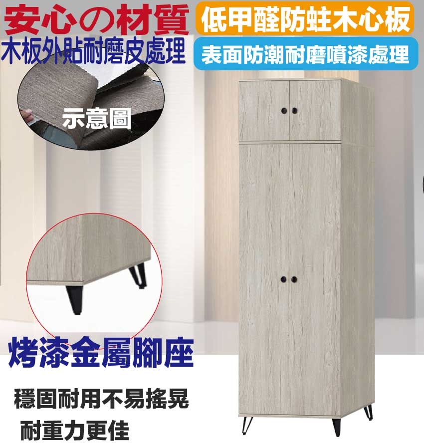 ★偏遠地區需額外加收運費,下標請先問與答詢問★ ★下訂前注意 由於商品流動較快,下訂前請先詢問是否有貨在下訂喔~★ 【綠家居】摩帝2.6尺四門內二抽加高衣櫃組合 淺橡木紋色系+現代簡約風格+安心材質製造,使用放心+搭配居家更便利,整體採用防蛀木心板+烤漆金屬腳座+防夾手緩衝門片五金等安心材質製造搭配外層採用防潮耐磨噴漆處理 ,採用開門櫃+吊衣桿+二抽屜+內開放層格等收納空間設計,全由專人配送到家,專業安心服務,替你省下更多時間!