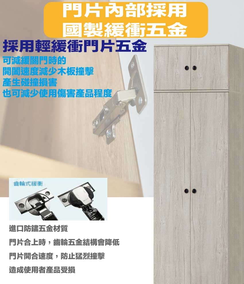 材質:防蛀木心板+烤漆金屬腳座+防夾手緩衝門片五金