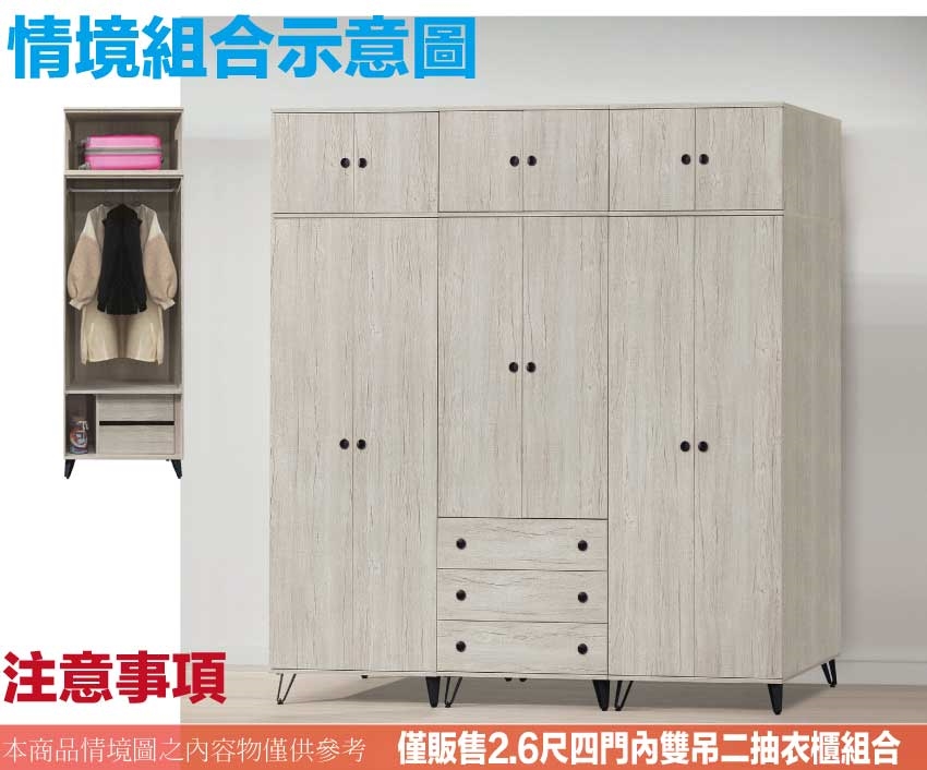 【綠家居】摩帝2.6尺四門內二抽加高衣櫃組合