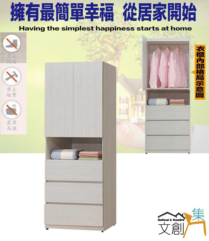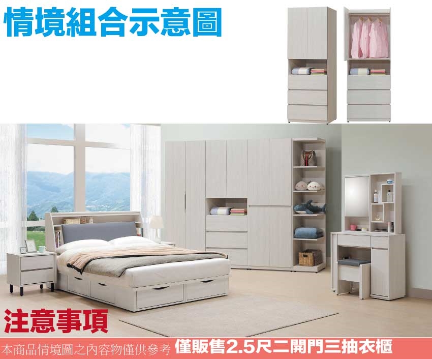 - ◆產品名稱:【綠家居】福登2.5尺二門三抽衣櫃