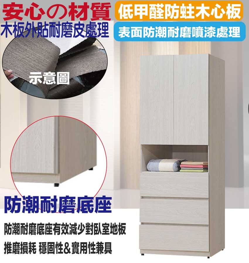 ★偏遠地區需額外加收運費,下標請先問與答詢問★ ★下訂前注意 由於商品流動較快,下訂前請先詢問是否有貨在下訂喔~★ 【綠家居】福登2.5尺二門三抽衣櫃 淺橡木紋色系+現代簡約風格+安心材質製造,使用放心+搭配居家更便利,整體採用防蛀木心板+防潮耐磨底座(可調高低水平)+防夾手緩衝門片五金等安心材質製造搭配外層採用防潮耐磨噴漆處理 ,採用開門櫃+吊衣桿+三抽屜+內&外開放層格等收納空間設計,全由專人配送到家,專業安心服務,替你省下更多時間!