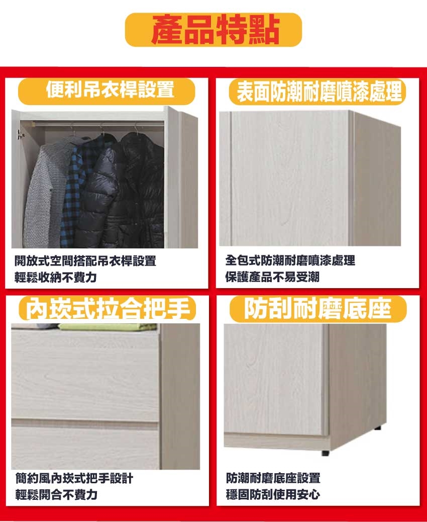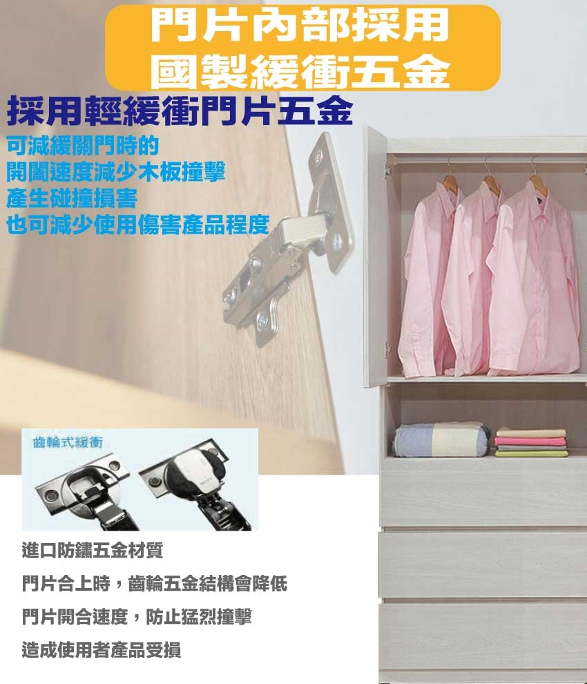 材質:防蛀木心板+防潮耐磨底座(可調高低水平)+防夾手緩衝門片五金