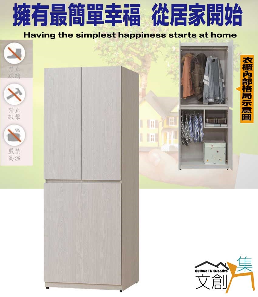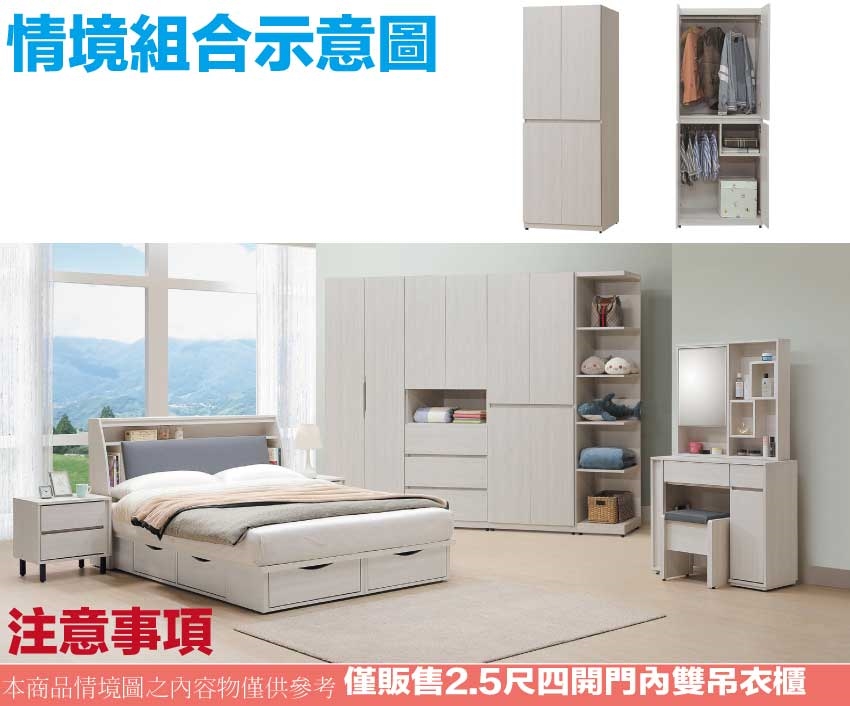 - ◆產品名稱:【綠家居】福登2.5尺二門內雙吊衣櫃
